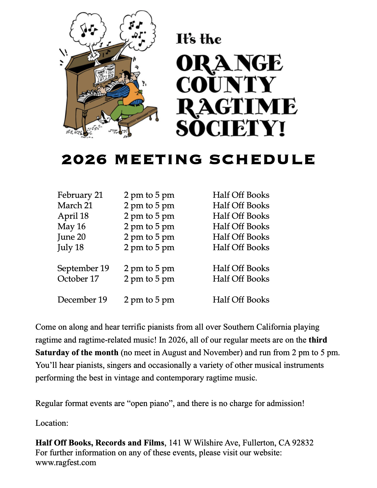 and feature terrific pianists, ragtime musicians and ragtime vocalists